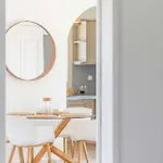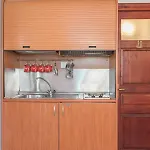 O equipamento de cozinha inclui fogão de vidro, aparelhos de cozinha e frigorífico. Os arredores do apartamento podem ser explorados utilizando carro.